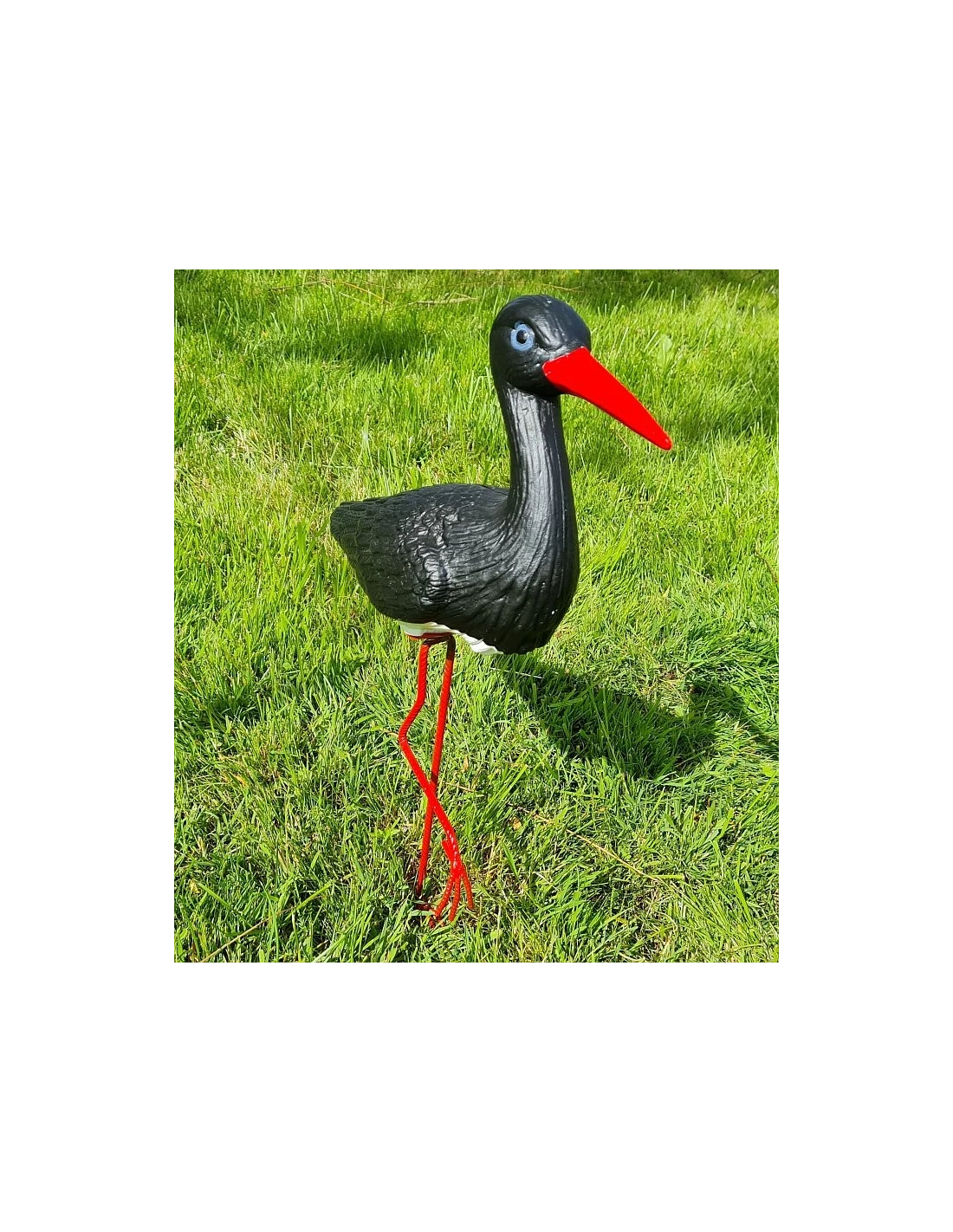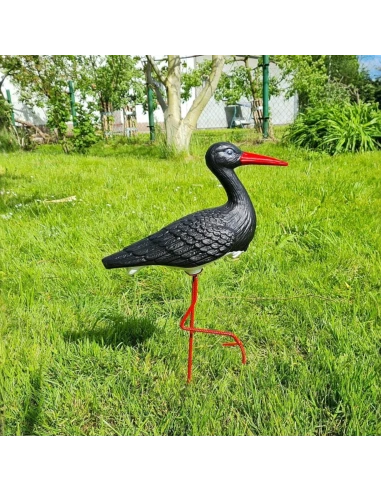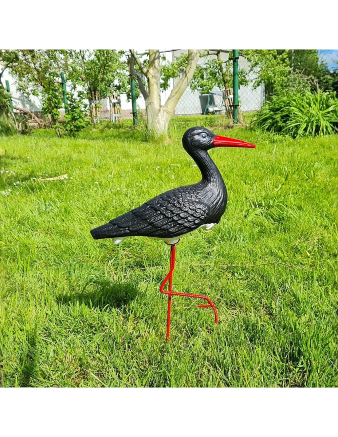 • Design unique – la figure représente une cigogne debout dans une couleur noire réaliste avec des accents rouges.