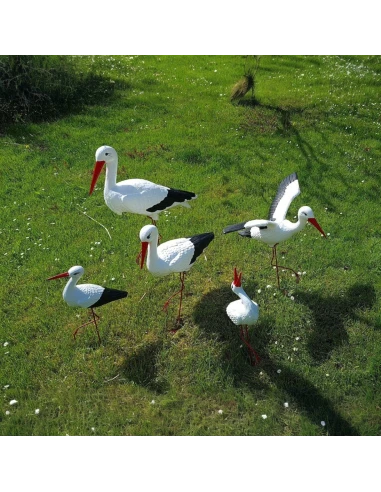 • Ensemble complet – comprend cinq cigognes de différentes tailles, permettant de créer une composition harmonieuse.