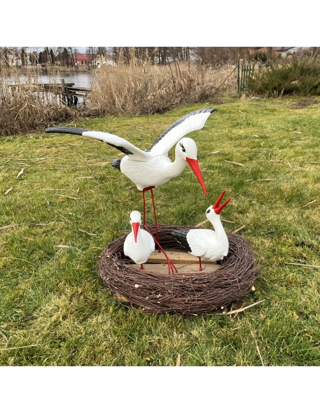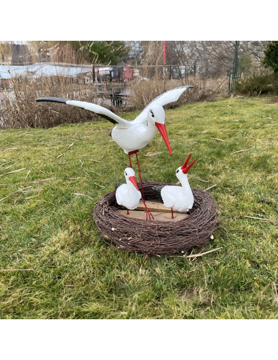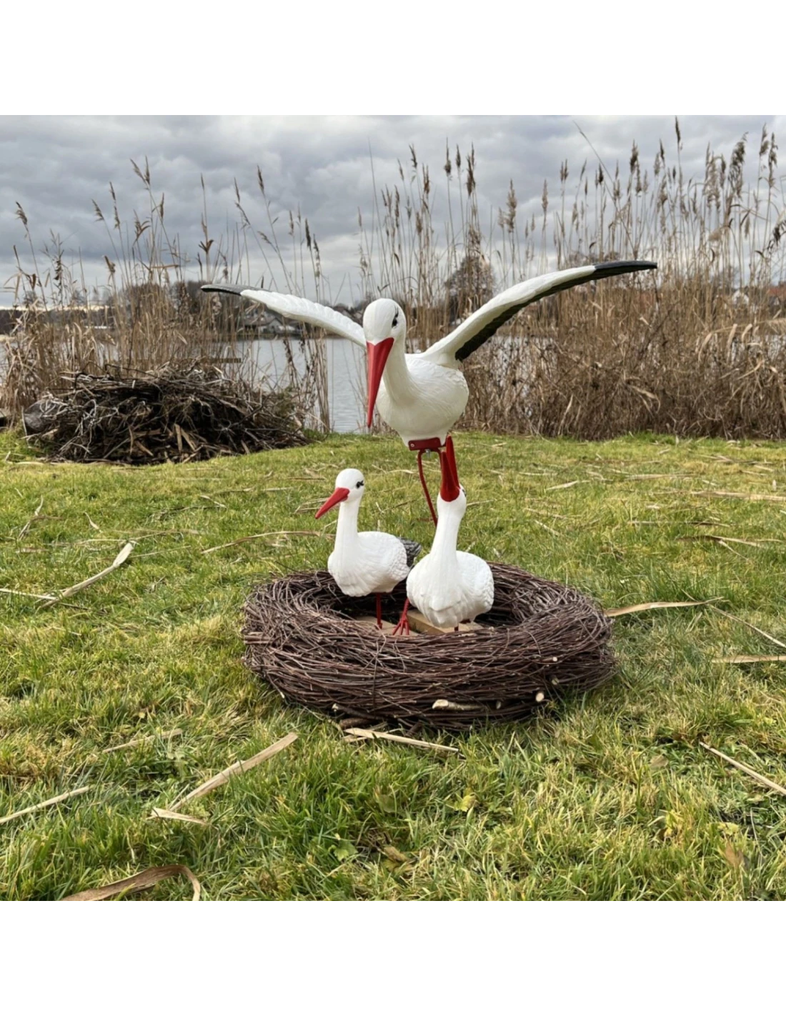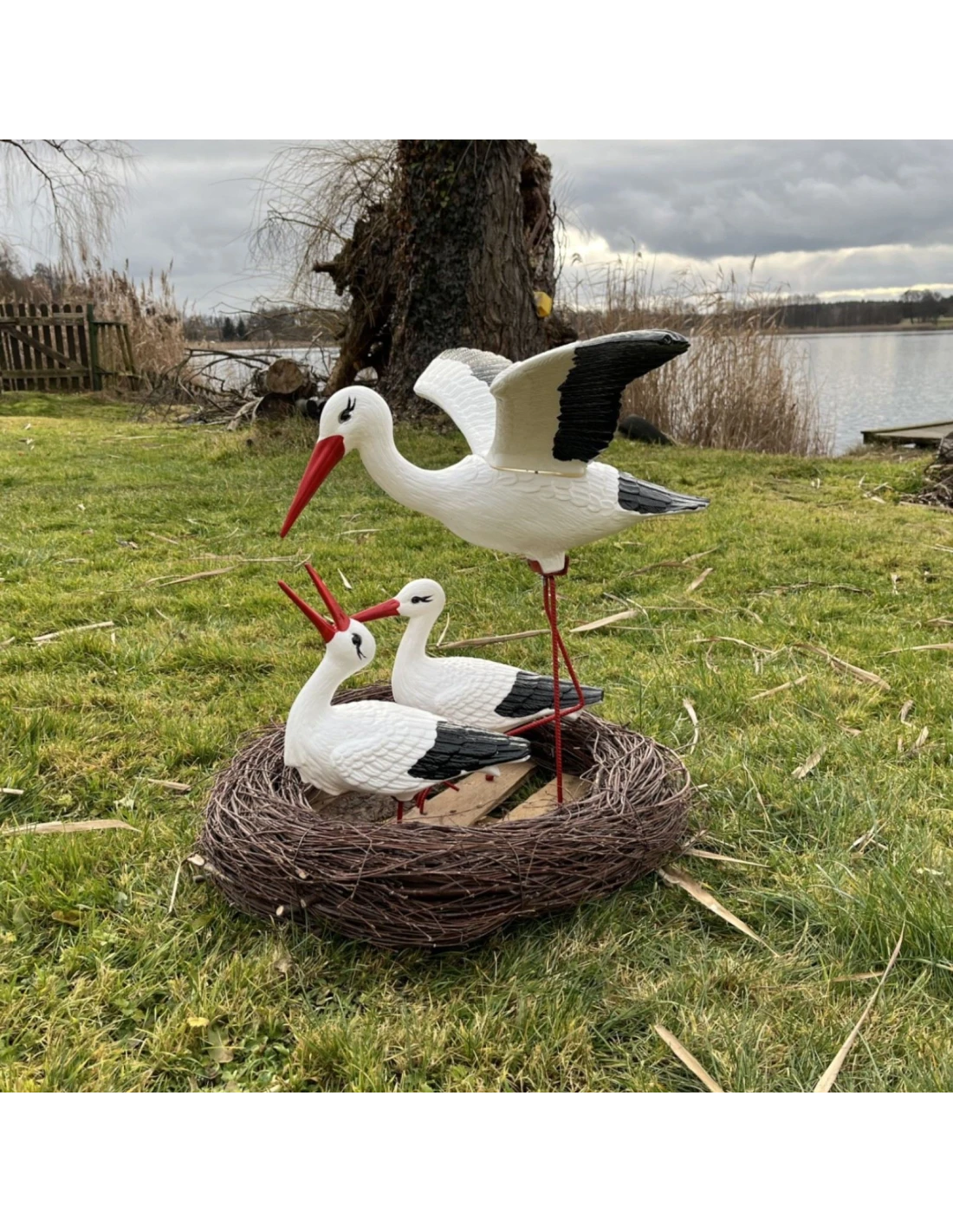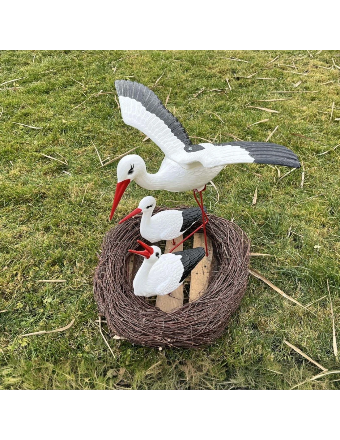 Figurine décorative nid de Cigogne 3 cigognes de Jardin décoration extérieure
