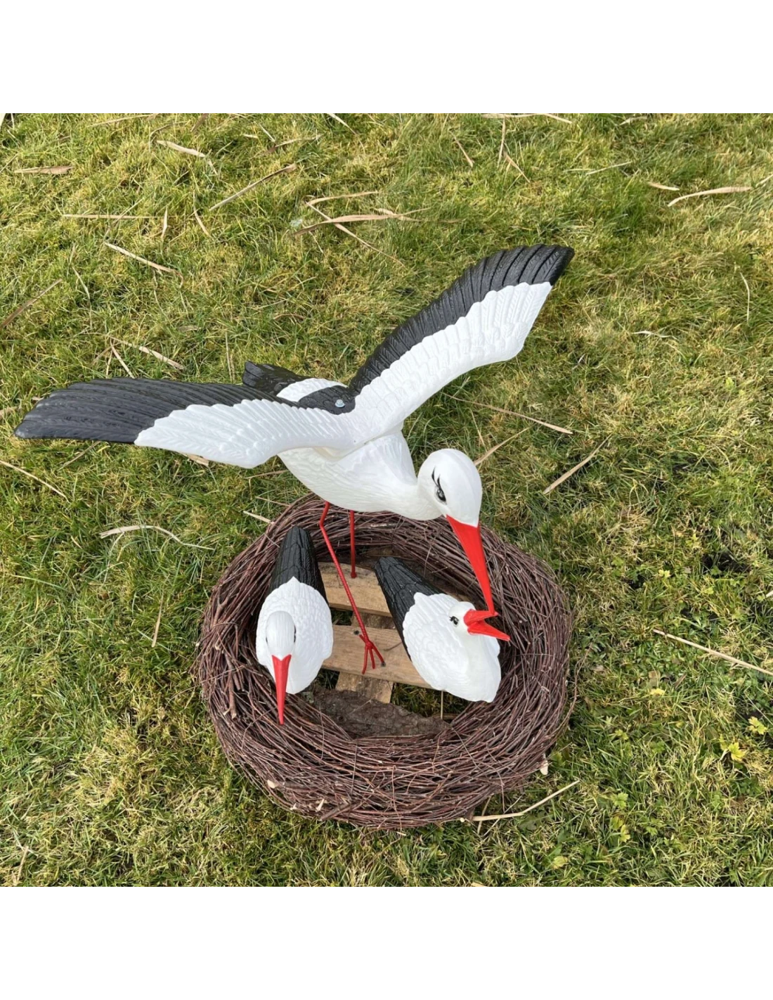 Figure décorative « Nid de Cigognes » avec cigogne en vol, 60 cm