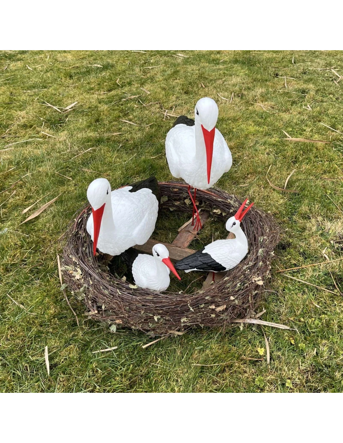 Figurine décorative nid de Cigogne 4 cigognes de Jardin décoration extérieure